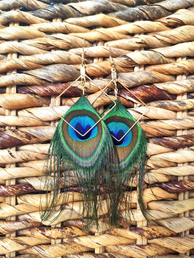 ✨ Boucles d'oreilles en plumes de paon véritables, non colorées