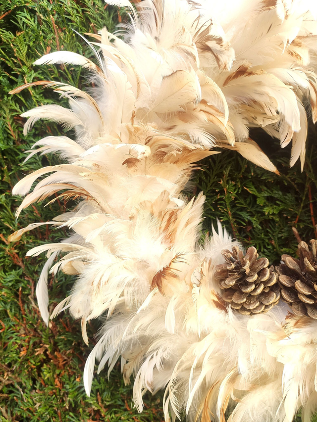 Couronne de Noël en plumes de coq beiges