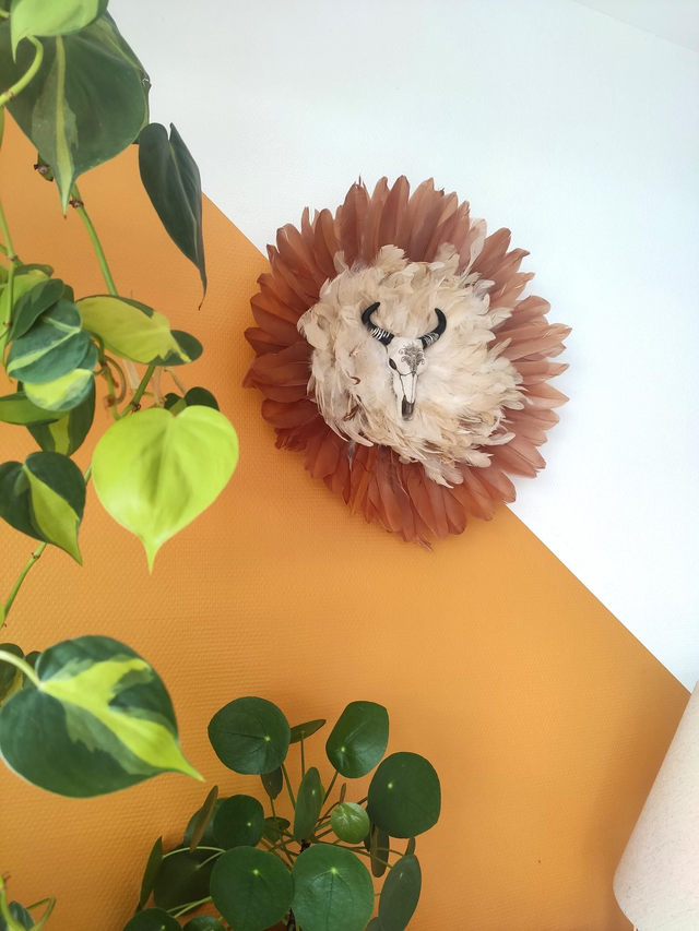 Jujuhat plumes cappucino plumes de coq et tête de buffle